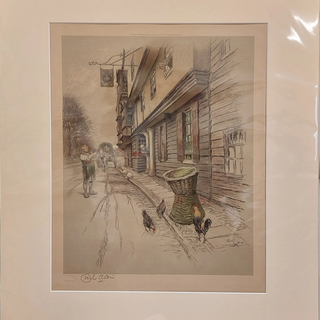 Signed Cecil Aldin lithograph of The King's Head, Chigwell. Early 20th Century. Mounted. Printed and published by Eyre & Spottiswoode, London.